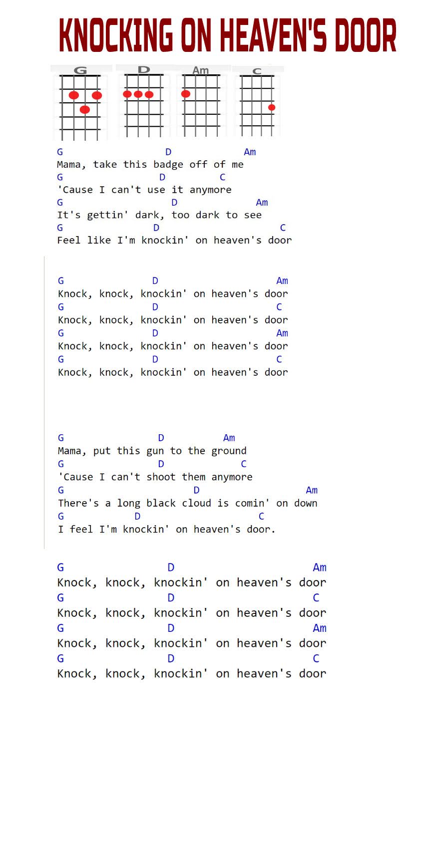 G, D, Am, C