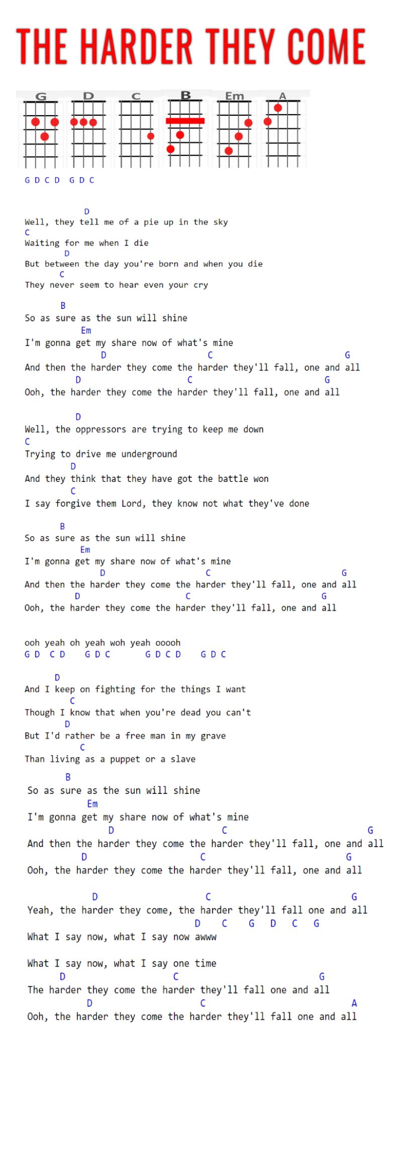 G, D, C, B, Em, A