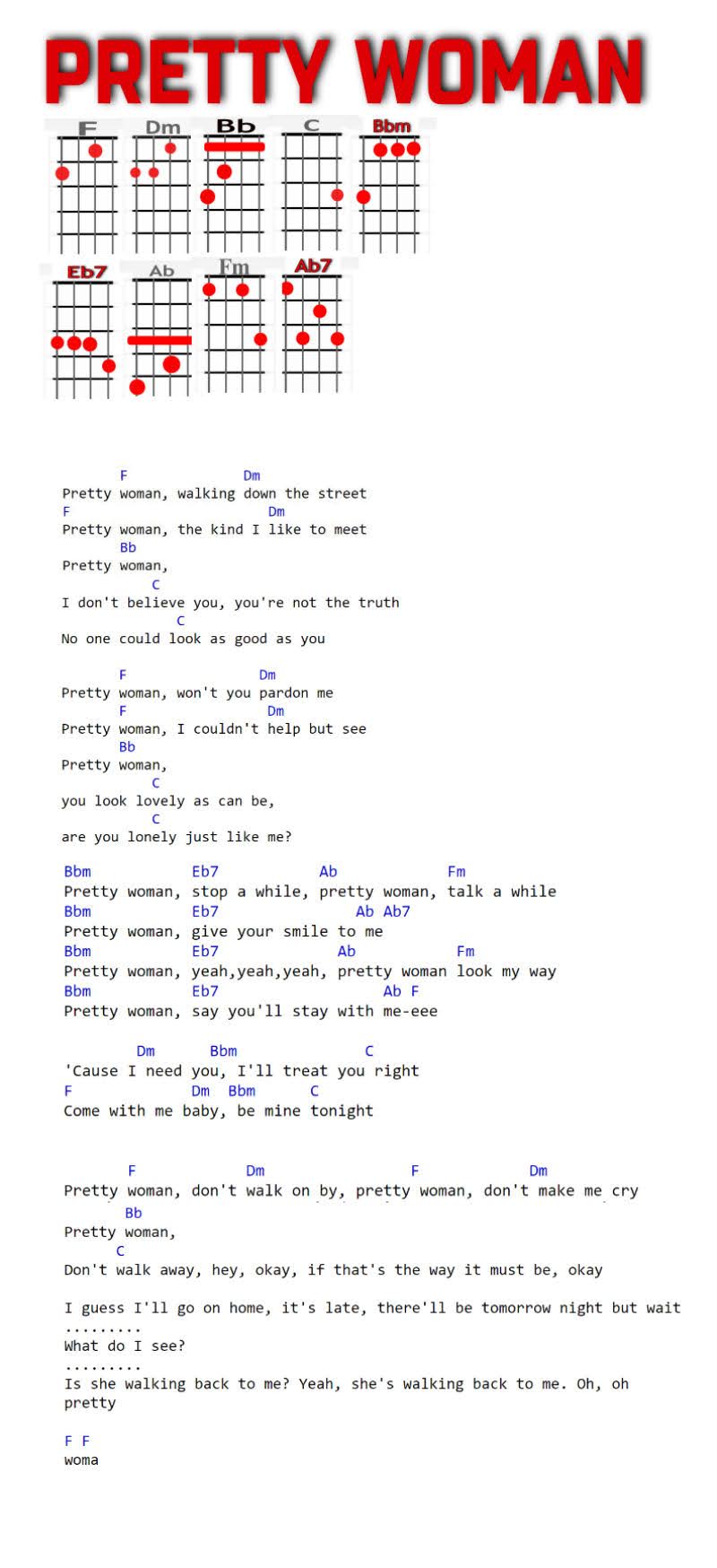 F, Dm, Bb, C, Bbm, Eb7, Ab, E7, Fm, Ab7