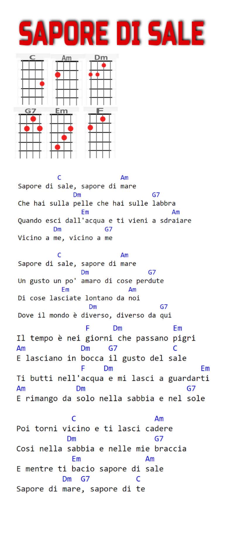 C, Am, Dm, G7, Em, F