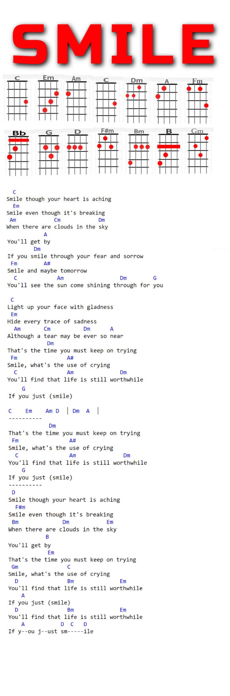 C, Em, Am, C,Dm, A, Fm, Bb, G, D, Gbm, Bm, B, Gm