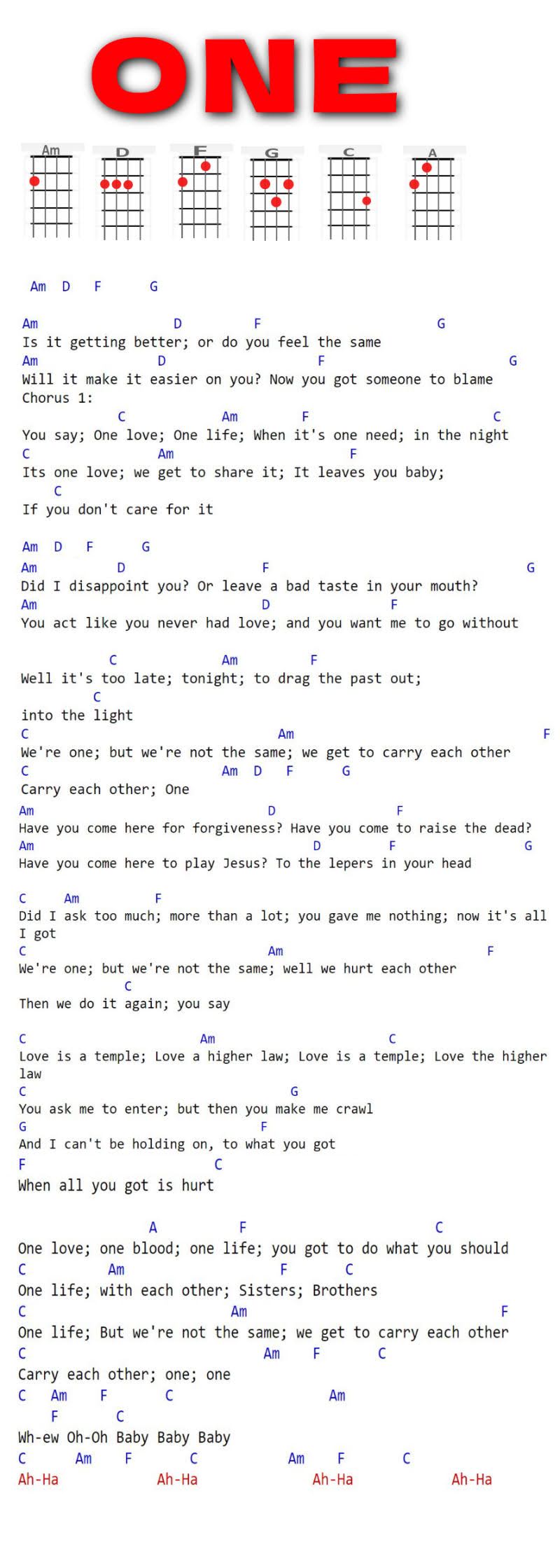 Am, D, F, G, C, A