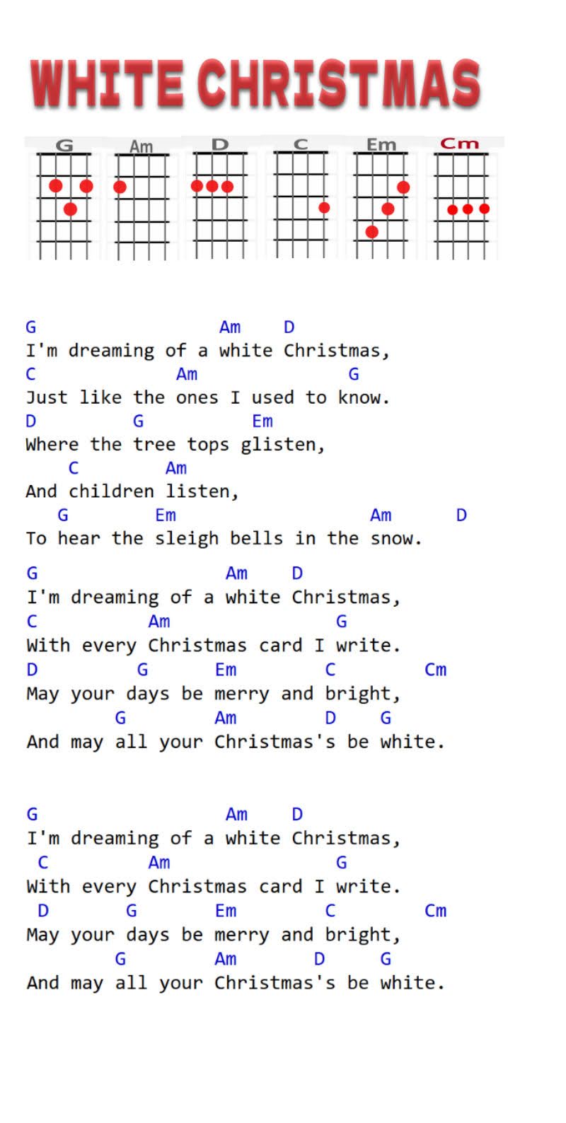 G, Am, D, C, Em, Cm,