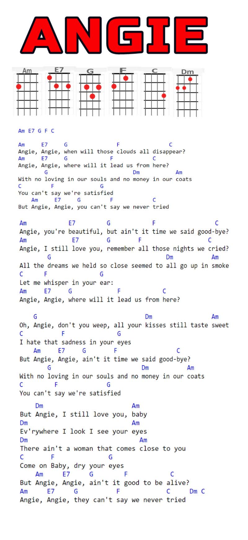 Am, E7, G, F, C, Dm