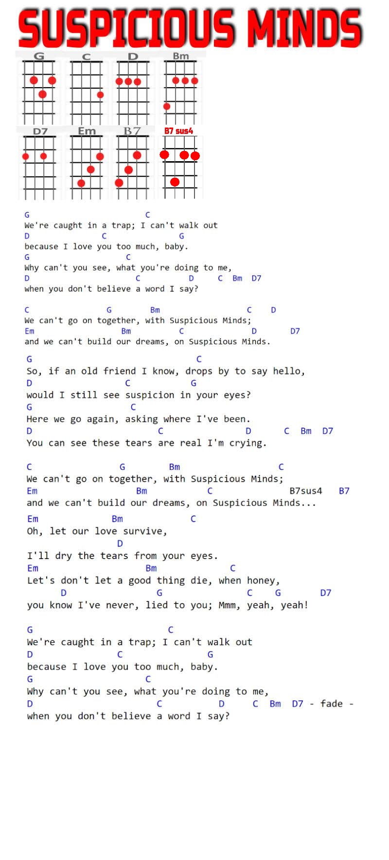 G, C, D, Bm, D7, Em, B7,Bsus4