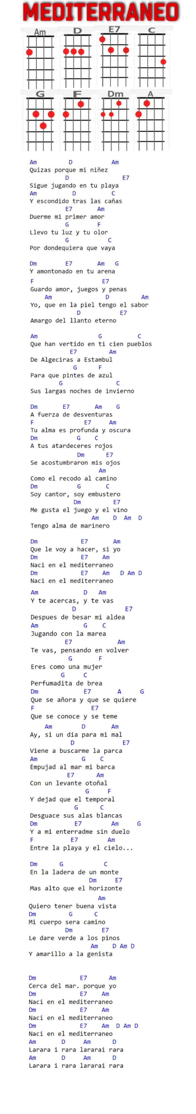 Am, D, E7, C, G, F, Dm, A