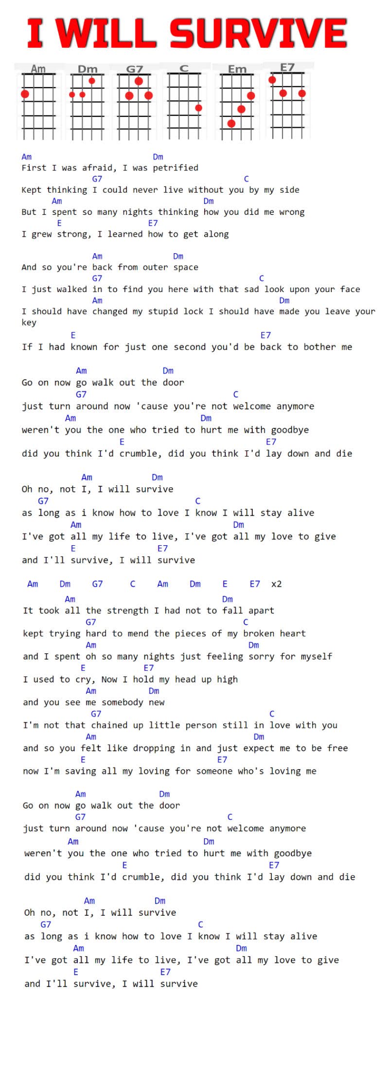 Am, Dm, G7, C, Em, E7