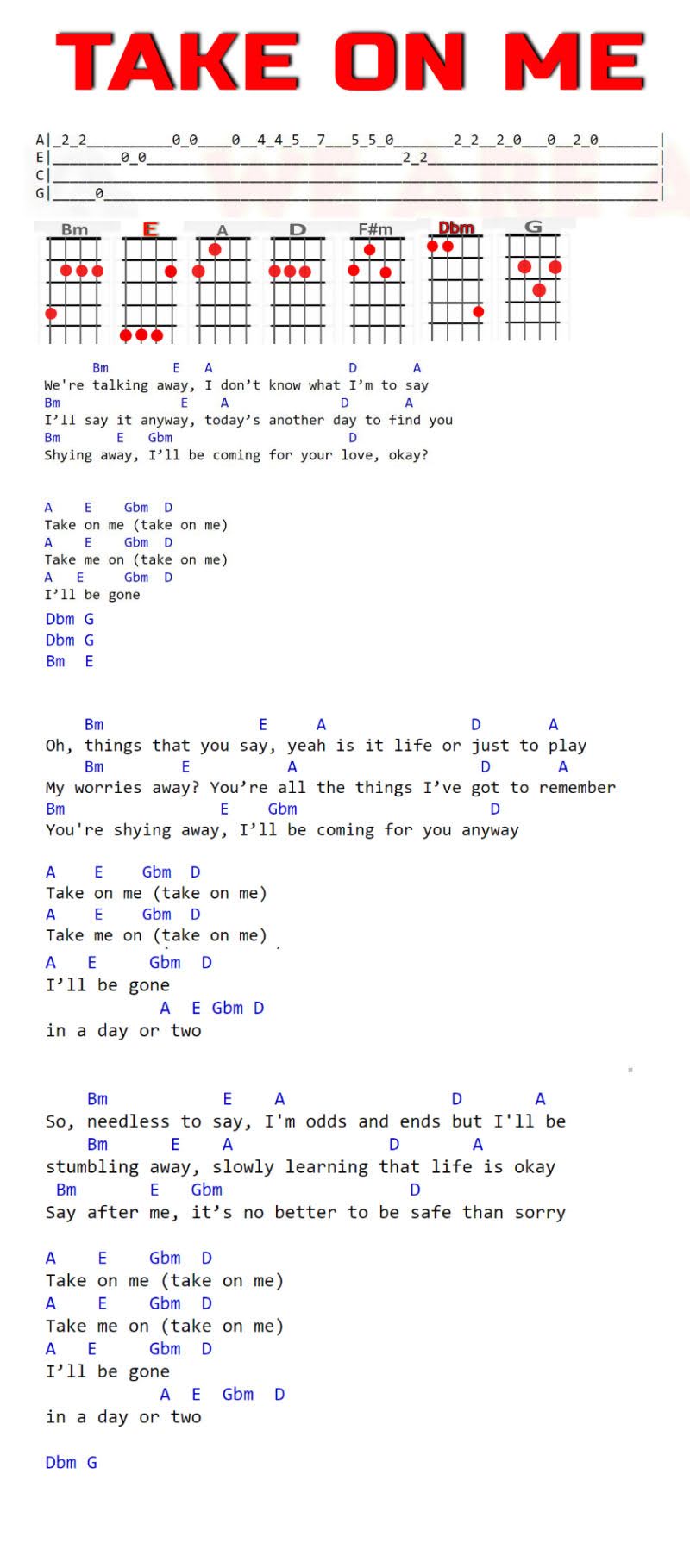 Bm, E, A, D, Gbm, Dbm, G