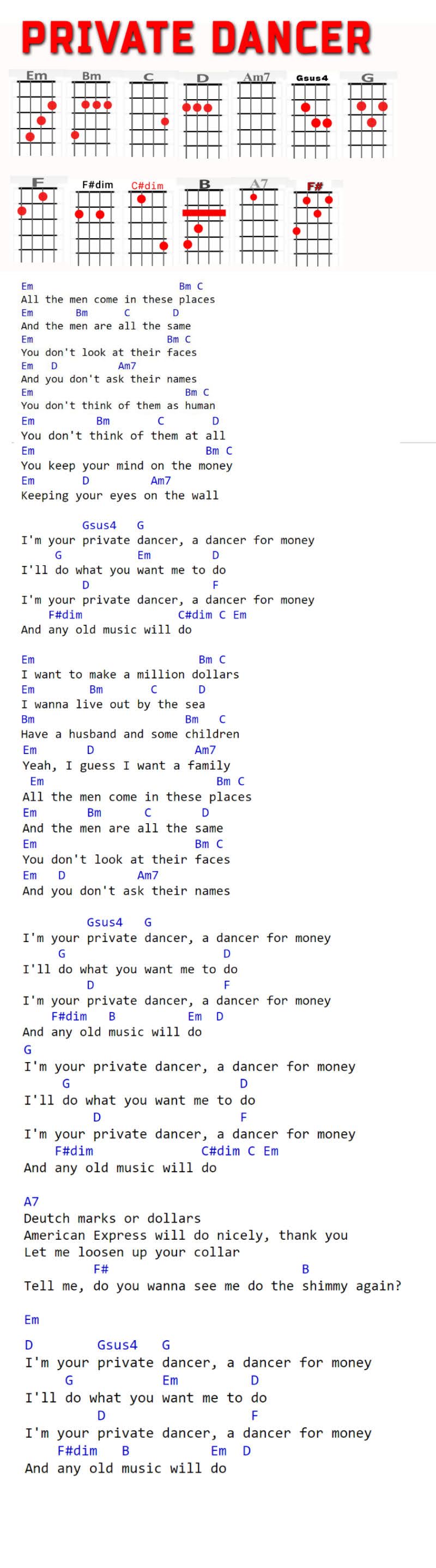 Em, Bm, C, D, Am7, Gsus4, G, F, Gbdim, Dbdim, B, A7, Gb