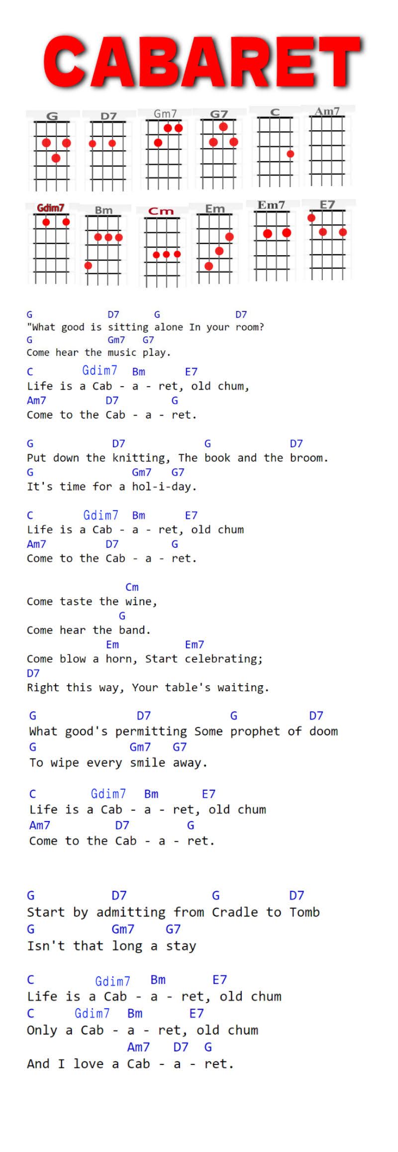 G, D7, Gm7, G7, C, Am7, Gdim7, Bm, Cm, Em, Em7, E7