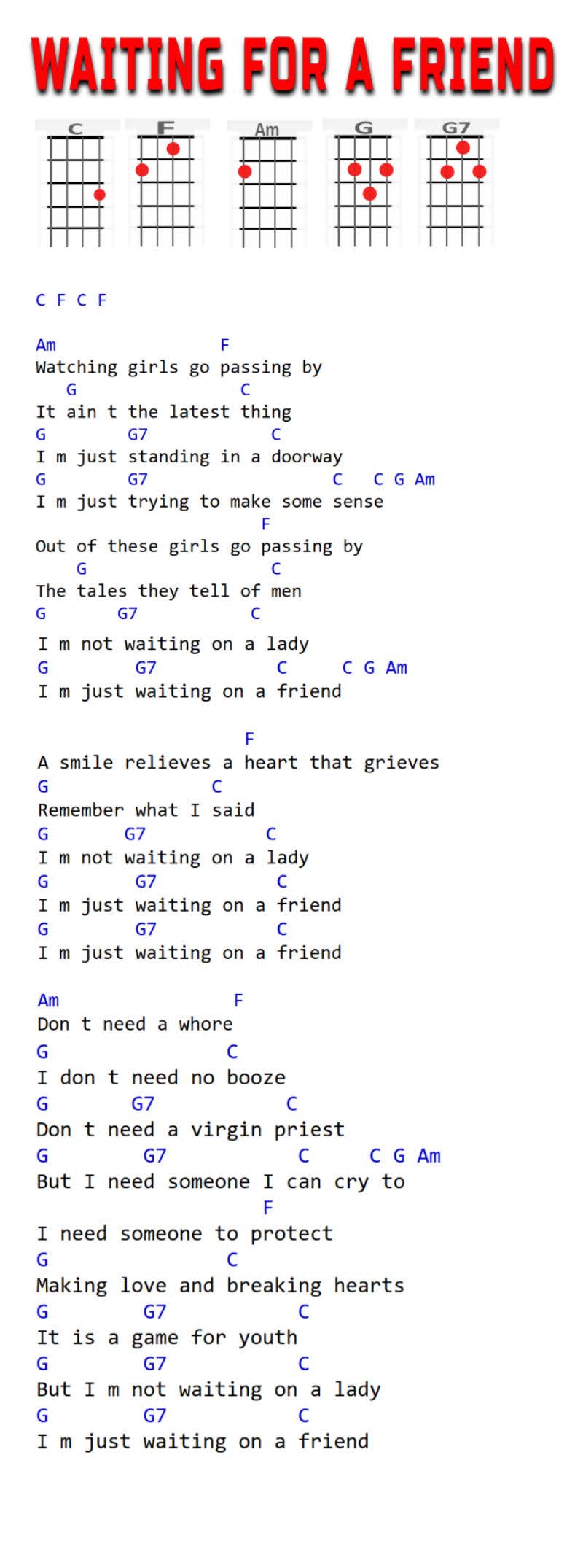 C, F, Am, G, G7