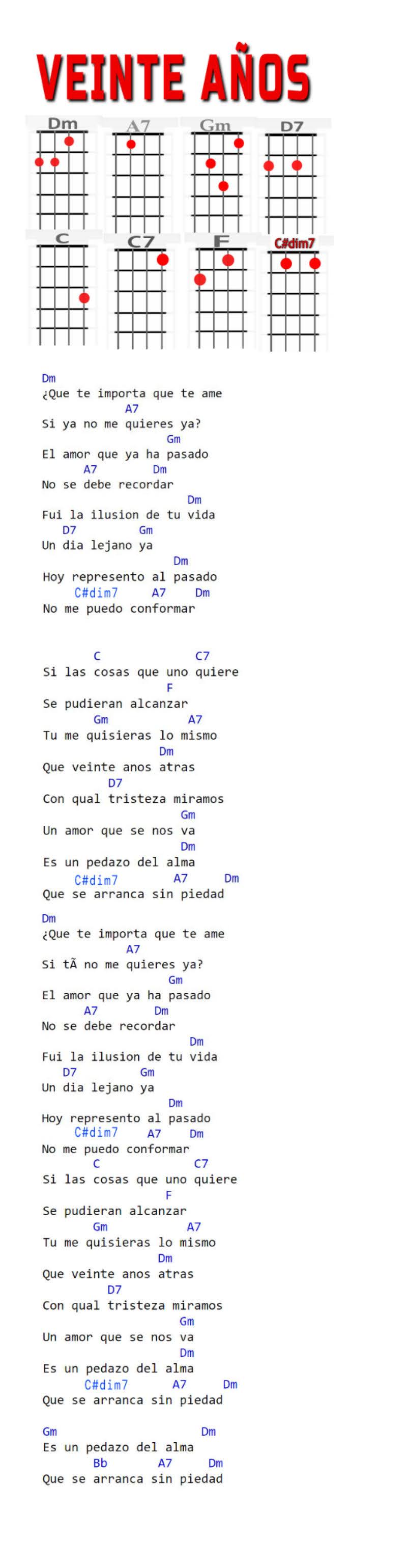 Dm, A7, Gm, D7, C, C7, F, Dbdim7