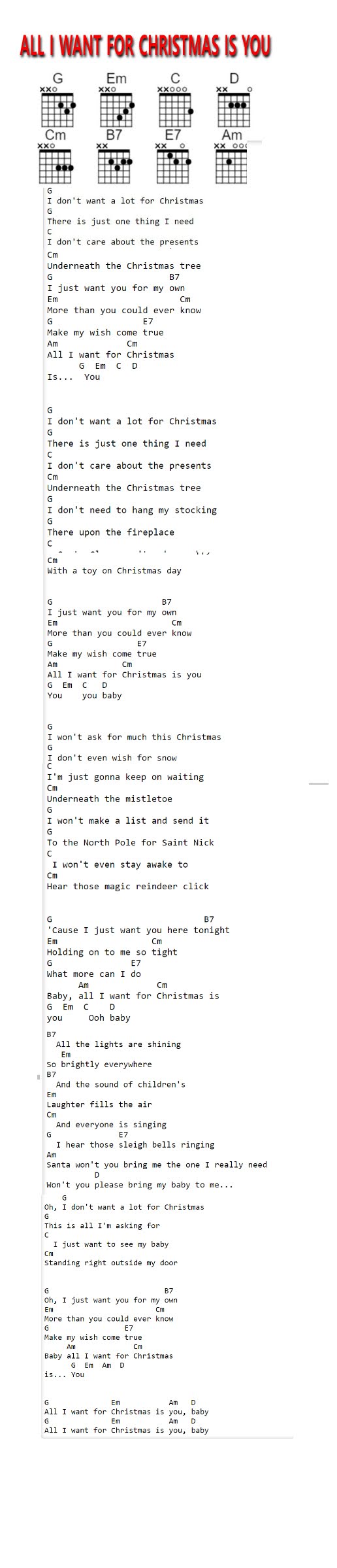G, Em, C, D, Cm, B7, E7, Am
